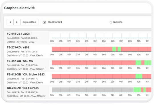 Visualisez en un coup d'oeil l'activité de l'ensemble de votre flotte et supervisez le déroulement des opérations.