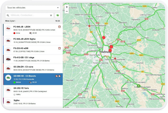 Suivez en temps réel la position des véhicules sur une cartographie précise, une vue satellite ou vue type "street view".